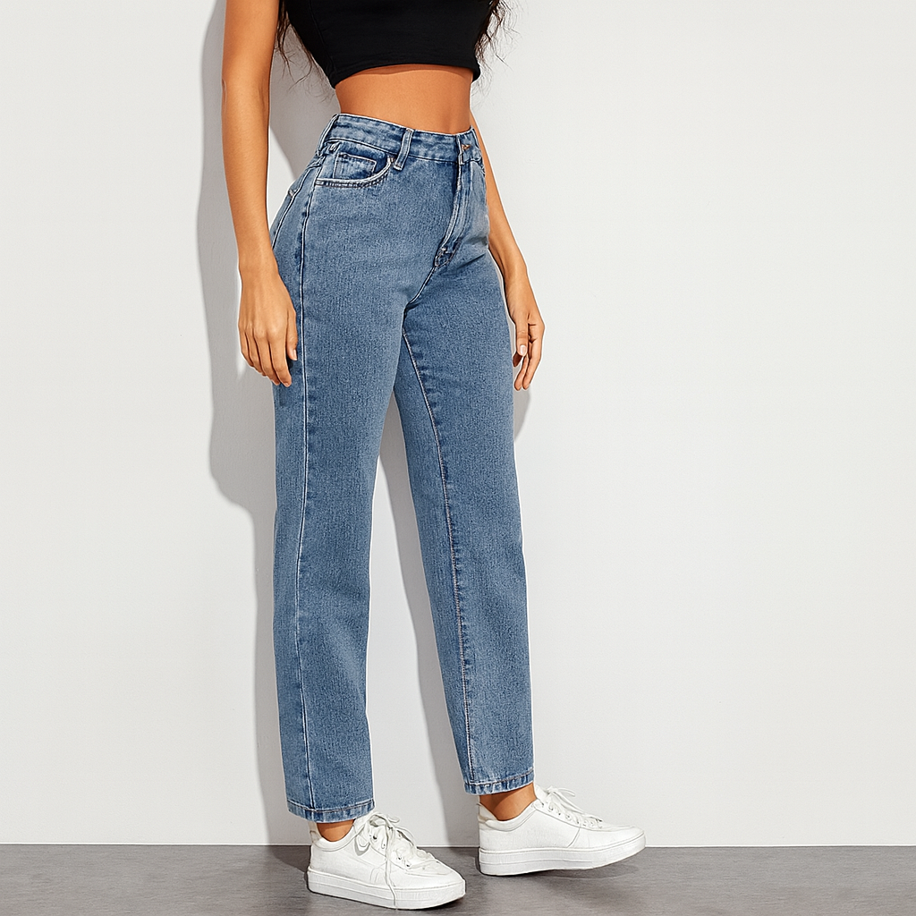 Elevate your everyday look with these classic blue flare jeans, designed for a flattering fit and modern comfort. The high-rise waist accentuates your shape, while the stretch denim fabric ensures ease of movement. Perfect for pairing with crop tops or casual shirts, these jeans blend timeless style with all-day wearability.