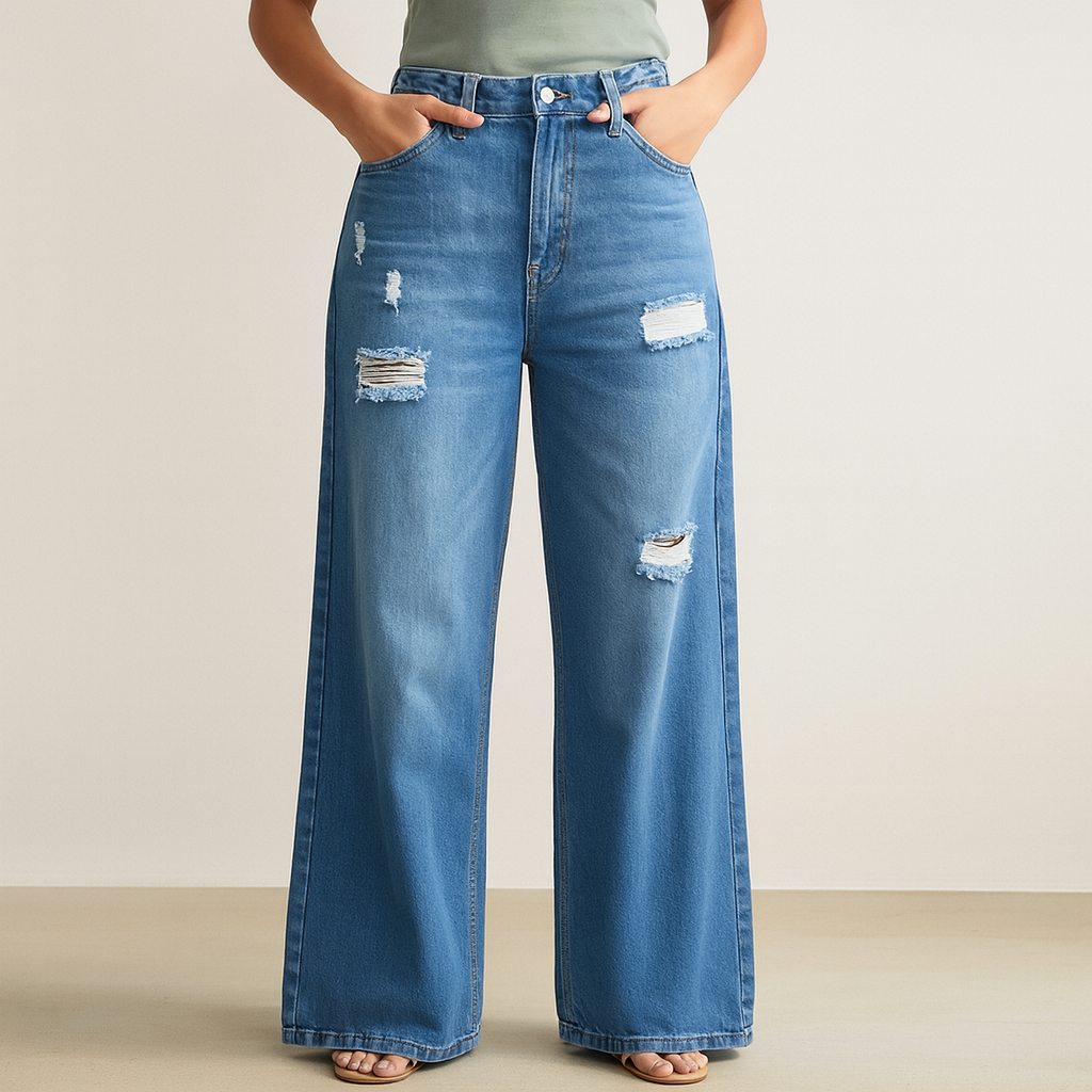 Elevate your everyday look with these classic blue flare jeans, designed for a flattering fit and modern comfort. The high-rise waist accentuates your shape, while the stretch denim fabric ensures ease of movement. Perfect for pairing with crop tops or casual shirts, these jeans blend timeless style with all-day wearability.