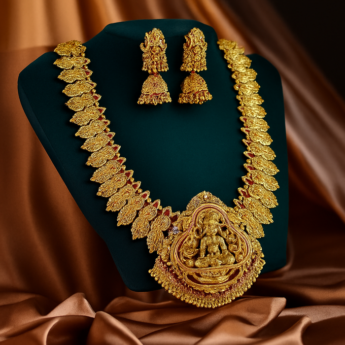 Swarna Rekha embodies elegance with its refined craftsmanship and timeless design. Meticulously crafted to highlight intricate details, this piece offers a sophisticated accent that enhances any ensemble. Ideal for those who appreciate classic beauty paired with expert artisanship, Swarna Rekha delivers both quality and style with lasting appeal.